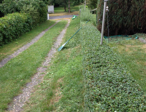 Grünfläche abgeholzt, der Untergrund mit Vlies