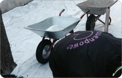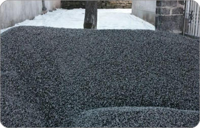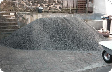 ausgelegt und dann mit Basaltkies aufgefüllt.